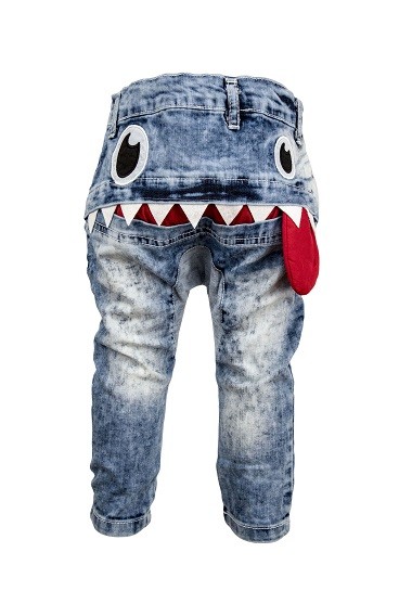 Pentru a pune in evidenta stilul trendy al bebelusului blugii Monster sunt prevazuti pe partea din spate cu dinti si limba.
