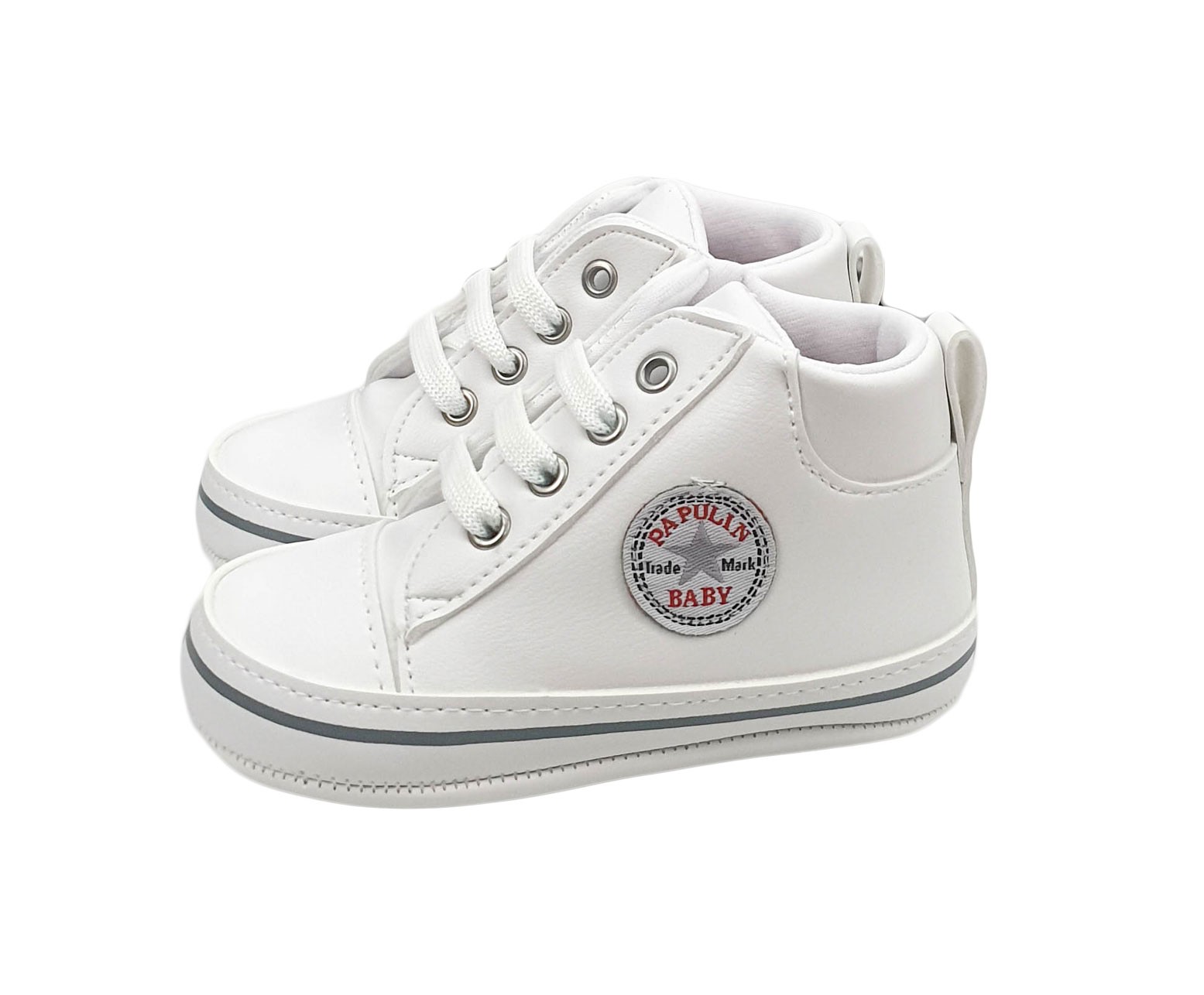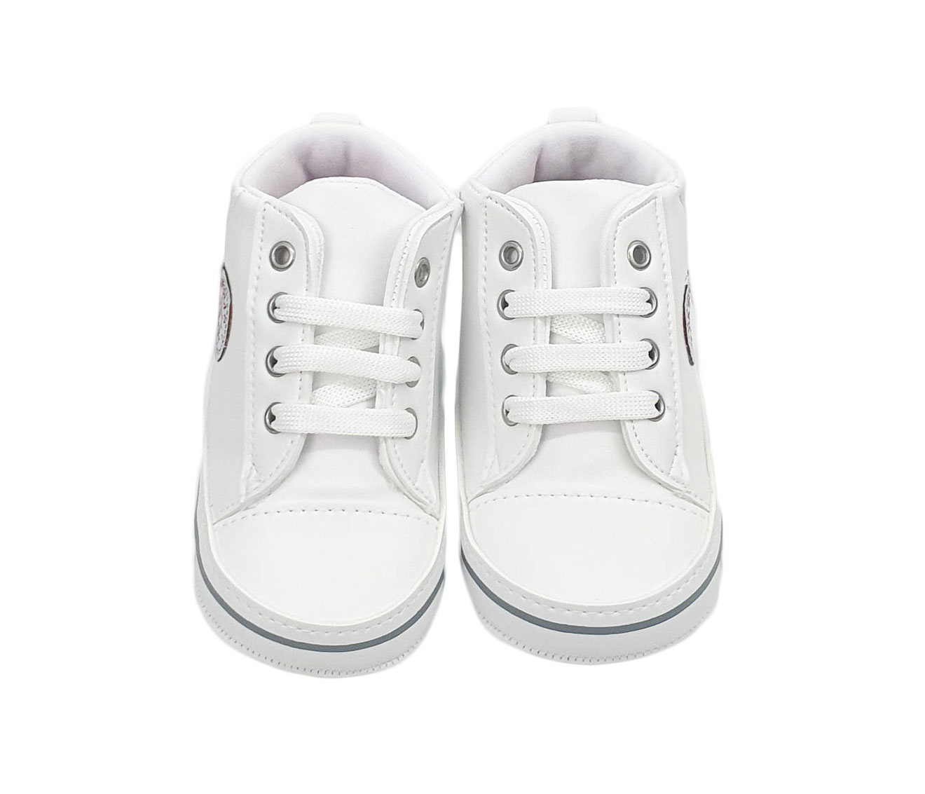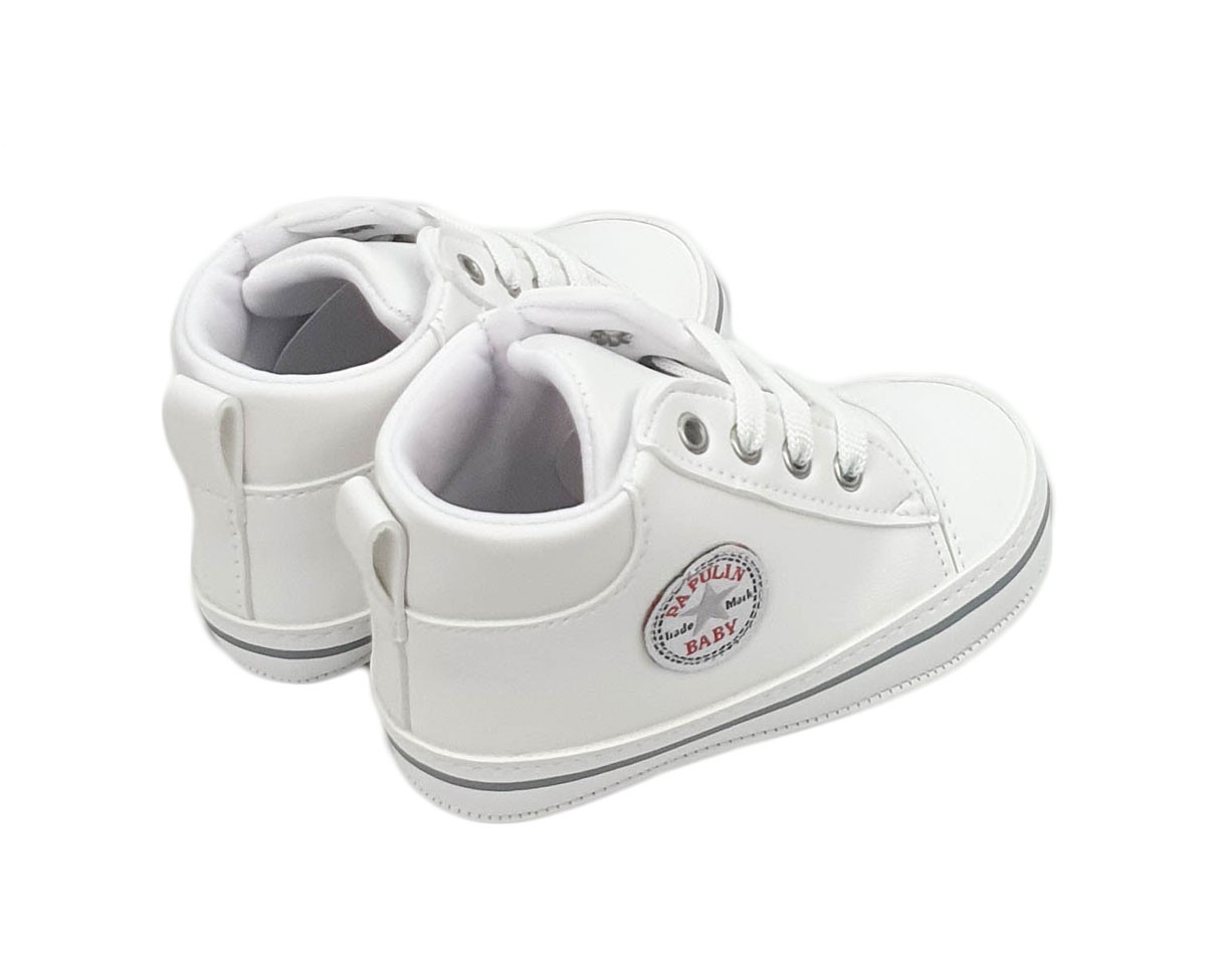 Botosei tip basketi pentru bebelusi, culoare alba. Botoseii nostri se pot asorta usor cu produsele noastre: compleuri, costume botez. Basketii pentru baieti sau fete sunt realizati la exterior din imitatie de piele. La interior sunt cu bumbac moale pentru confortul bebelusului. Sunt potriviti oricarei tinute, casual, smart-casual sau elegante. Botosei tip basketi pentru bebelusi, culoare alba, un model trendy ce va pune in evidenta tinuta bebelusului.