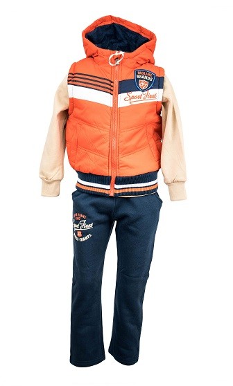 Compleul Moline Grands este un element de imbracaminte din bumbac, format din trei parti: vesta, bluza cu maneca lunga si pantalon. Bluza de culoare crem este cu imprimeu pe fata, are bata elastica la maneci si este cu polar pe interior. Vesta vatuita din fas de culoare portocalie se incheie cu fermoar are bata elastica, este prevazuta cu gluga si buzunare laterale. Interiorul vestei este captusit cu polar. Pantalonii de culoare bleumarin, sunt prevazuti cu doua buzunare laterale, elastic, sunt imprimati pe un picior, iar pe interior sunt cu polar. Compleul Molin Grands va asigura aspectul casual sport de care ai nevoie in perioada rece.
