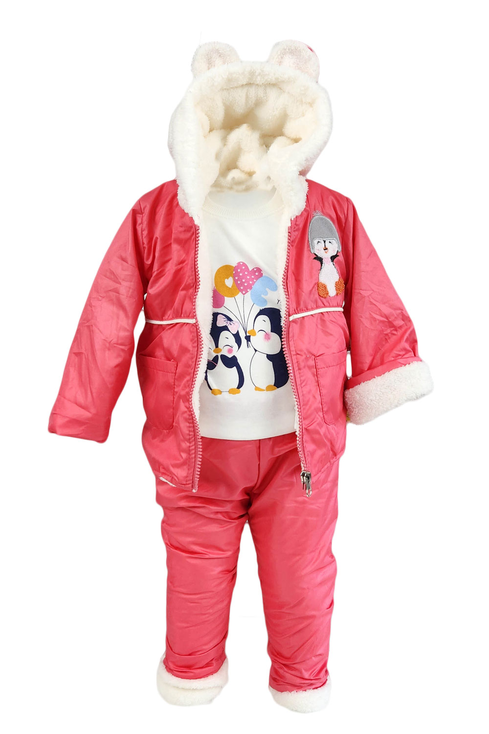Compleu pentru fete, trei piese roz, confectionat din fas cu blanita. Compleul este alcatuit din trei piese: jacheta, bluza cu maneca lunga si pantaloni. Jacheta este din fas cu blanita. Este prevazuta cu bata elastica. Se incheie cu fermoar. Bluza de culoare alba este din bumbac si are maneca lunga. Pantalonii sunt prevazuti cu elastic in talie. Compleu pentru fete, trei piese roz, un model trendy potrivit pentru o tinuta lejera. Compleul are un aspect deosebit ce te va scoate in evidenta.