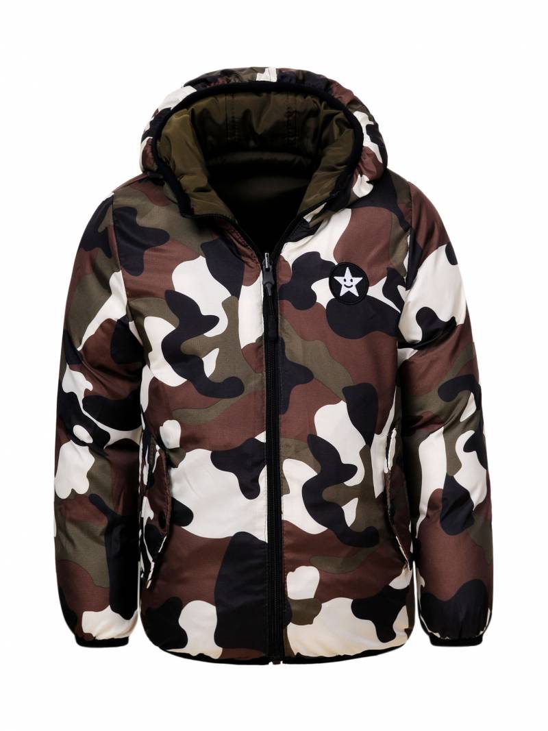 Un model de geaca vatuita din fas, foarte practic pentru perioada rece. Geaca cu doua fete pentru baieti kaki, un model cu doua fete. Prima fata este de culoare kaki, iar cea de a doua fata este de culoare camuflaj kaki. Este o piesa vestimentara practica pentru a fi purtata zi de zi, sau cand trebuie sa iesi rapid din casa, ideala pentru perioada rece de iarna. Geaca se incheie cu fermoar, este prevazuta cu gluga, cu doua buzunare laterale si un buzunar la piept cu fermoar, la maneci are elastic. Modelul de geaca Jearkid are un aspect trendy ce te va face remarcat. Geaca baieti, usoara si cofortabila, ce-ti va tine de cald in zilele reci de iarna.