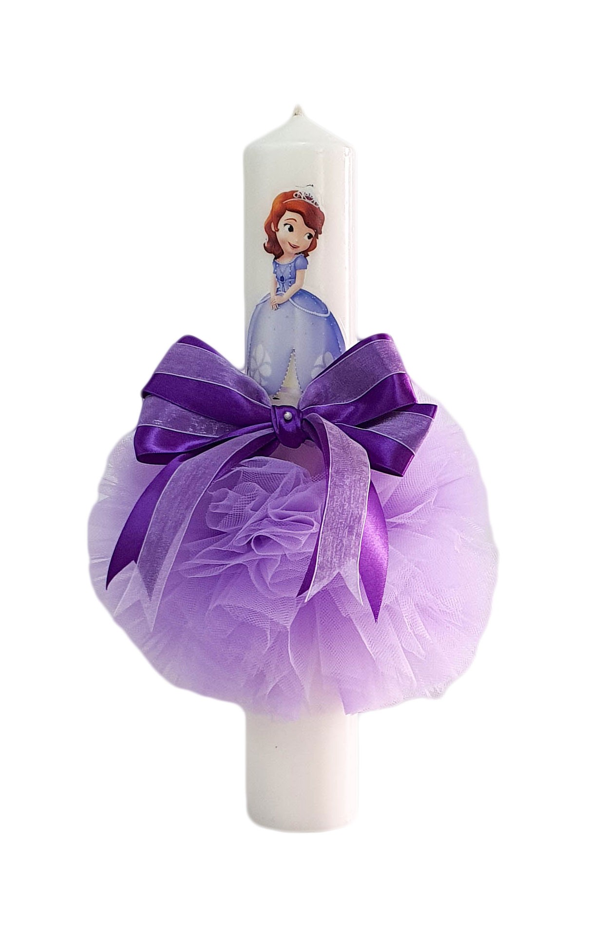 Lumanare botez, model Printesa, culoare mov - Tissu