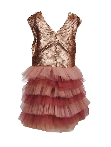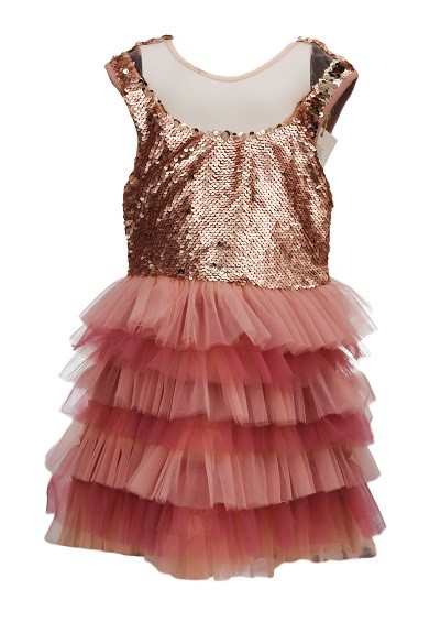 Modelul de rochie este confectionata din bumbac cu paiete roz si tulle. Modelul se potriveste unei tinute elegante sau casual, este decorata cu paiete. Pentru o imbracare facila rochia este prevazuta cu fermoar ascuns in partea din spate. Rochia de culoare roz este confectionata din materiale moi si placute la atingere, pentru confortul dumneavoastra. Este un model trendy ce te va pune in evidenta la petreceri.