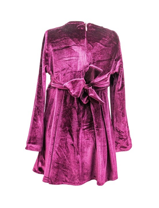 Acest model de rochie este confectionat din Catifea de culoare mov si este un model potrivit in orice sezona. Rochita cu maneca lunga de culoare mov este decorata cu o fundita din Catifea de aceeasi culoare. Este un model ce se potriveste oricarui stil casual sau elegant. Pentru o imbracare facila rochita se incheie in partea din spate cu fermoar ascuns iar datorita cordonului se va aseza foarte bine pe corp. Rochia este confectionata din materiale moi si placute la atingere. Rochia din Catifea este un model versatil ce poate fi purtat la o tinuta de zi cu zi sau petreceri.