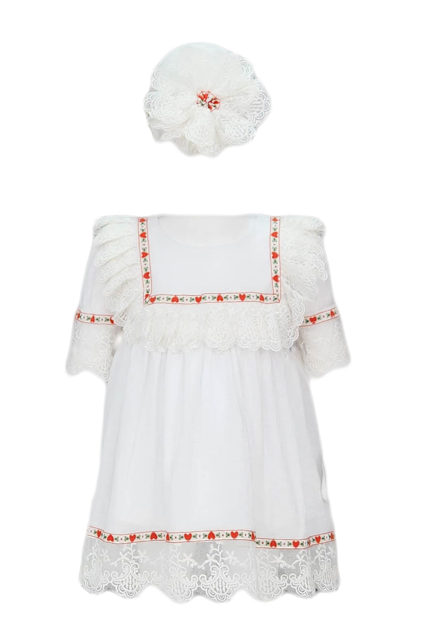 Rochita fetite cu motive traditionale, culoare alba potrivita unui stil casual-elgant. Create din materiale de calitate. Rochita pentru fetite model trendy.