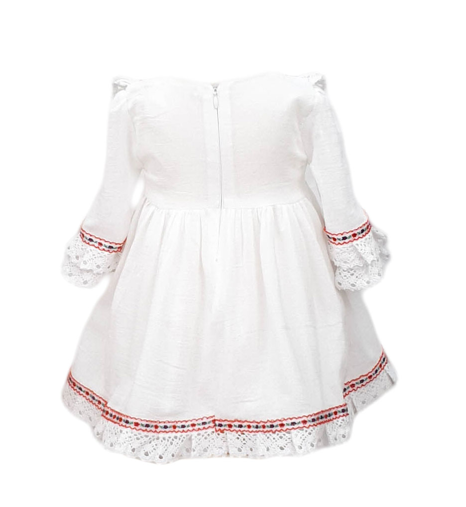 Rochita traditionala, 2 piese, culoare alba potrivita unui stil casual-elgant. Create din materiale de calitate. Rochita traditionala fetite model trendy.