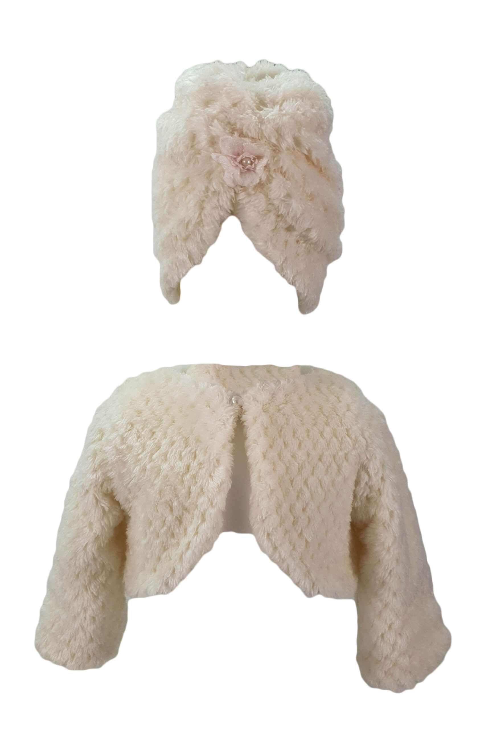 Set bolerou cu turban din blanita ivoire pentru a completa tinuta de botez, si nu numai. Este confectionat din materiale moi si placute la atingere.