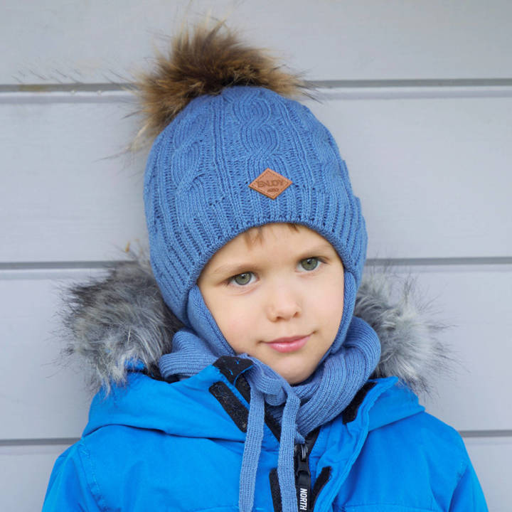 Set de iarna pentru baieti, caciula si fular albastru Minor. Caciulile noastre sunt elastice și se întind în medie cu 2 cm peste circumferința declarată a capului pentru un confort maxim și o potrivire perfectă.
