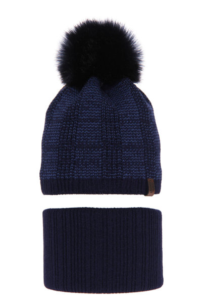 Set de iarnă pentru băieți, căciulă și fular bleumarin cu pompon, model Harison - Tissu