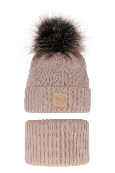 Set de iarnă pentru fete, căciulă și fular circular crem cu pompon, model Dina. Căciula de iarnă pentru fete este perfectă atât pentru călătoriile de iarnă, cât și pentru plimbările de zi cu zi. Flexibilitatea este una dintre cele mai importante caracteristici ale sale, care asigură un confort ridicat la purtare. Toate produsele sunt create cu pasiune, iar lucrul manual le conferă un caracter individual. Datorită bogăției de modele și a utilizării diferitelor accesorii, fiecare fată va găsi un model care să se potrivească stilului ei. Set de iarnă pentru fete, căciulă și fular circular crem cu pompon, model Dina confectionat din materiale de calitate.