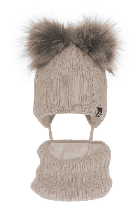 Set de iarna pentru fete, caciula și fular crem Marien - Tissu
