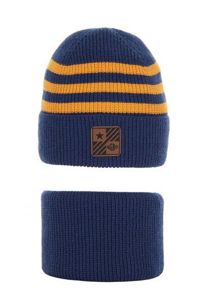 Set doua piese copii, caciula-fular, bleumarin, 50-52 cm. Set format din doua piese: caciula si fular burlan dublu. Setul este potrivit pentru sezonul de iarna, este gros. Setul are aspect tricotat. Caciula si fularul sunt confectionate din 30% lana + 70% acril. Are plus pe interior. Materialele sunt de calitate superioara, placute la atingere. Caciula si fular perfect asortate, trendy.