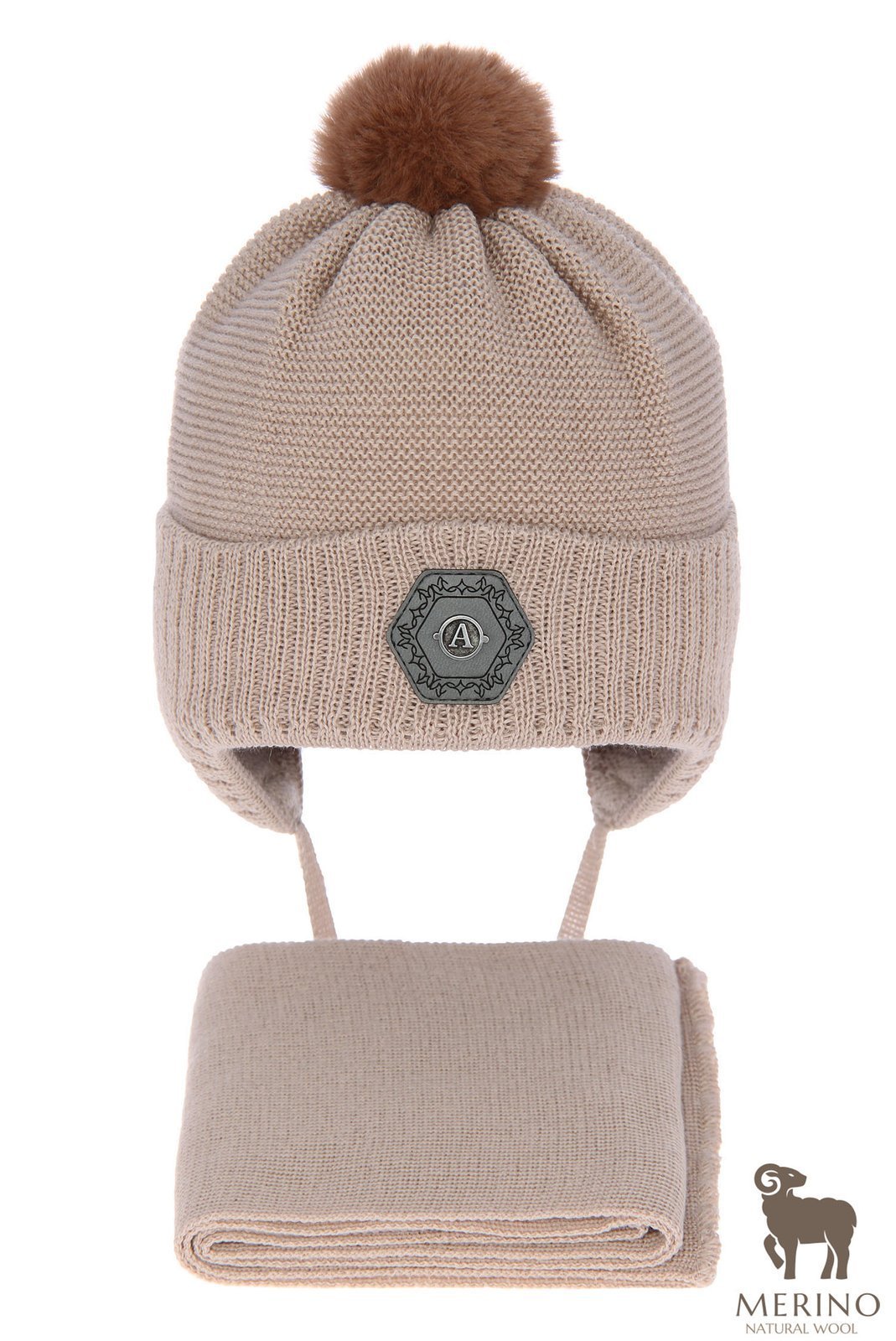 Set iarna baieti caciula-fular crem, 40-42 cm. Set baieti format din doua piese: caciula si fular. Setul este potrivit pentru sezonul de iarna. Setul are aspect tricotat. Caciula si fularul sunt confectionate din 50% lana + 50% acril. Materialele sunt de calitate superioara, placute la atingere. Set iarna baieti caciula-fular crem, 40-42 cm, perfect asortate, trendy.