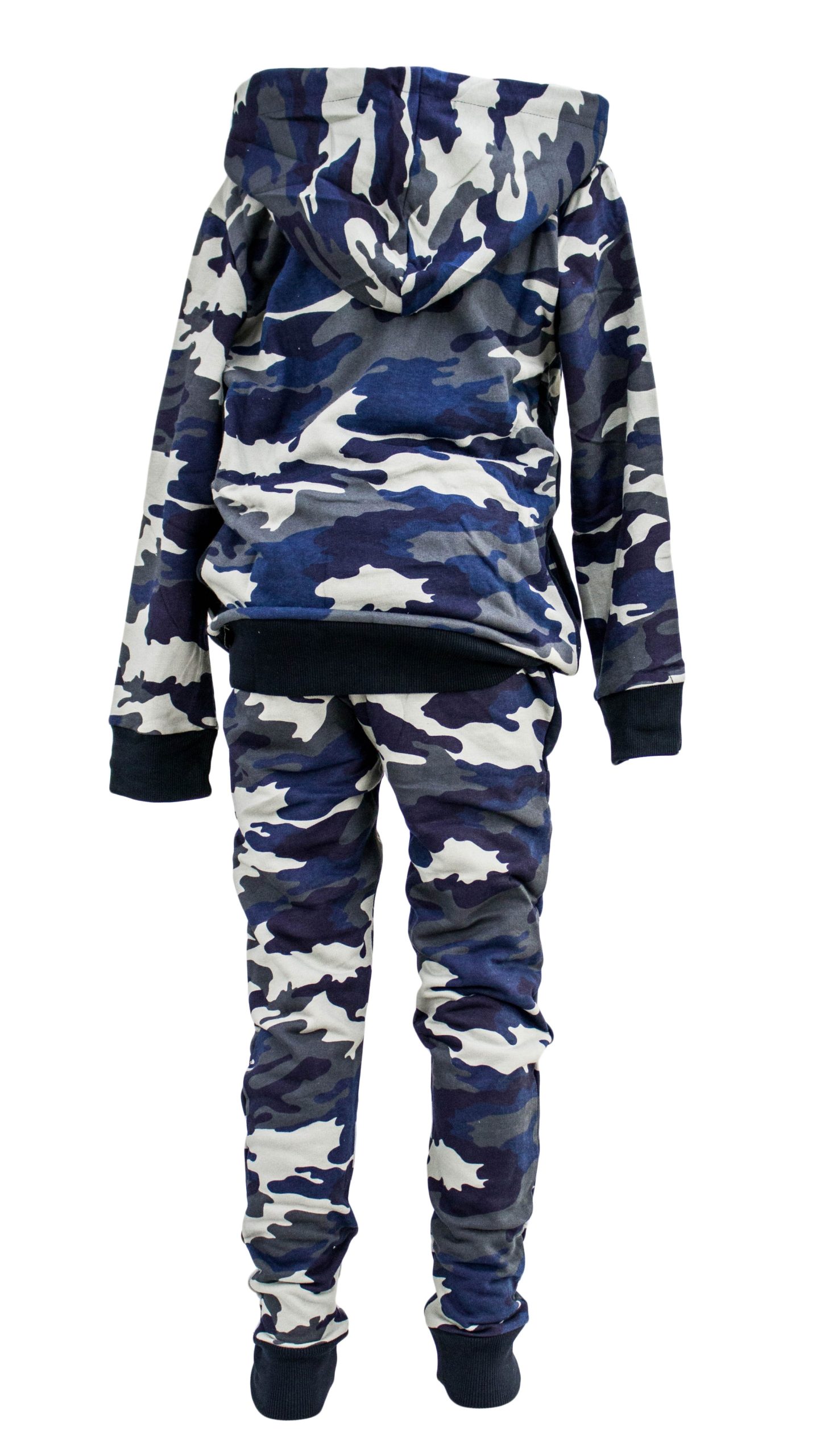 Trening doua piese albastre, model Army. Este un element de imbracaminte format din doua parti: bluza si pantalon. Bluza de culoare albastra camuflaj este prevazuta cu gluga. Este cu bata elastica la maneci si-n partea de jos. Pantalonii asortati cu bluza, sunt prevazuti cu doua buzunare laterale, elastic, snur in talie si bata elastica. Un trening doua piese albastre, model Army, cu aspect deosebit. Datorita materialului, bumbac, va oferi si confortul necesar. Treningul este confectionata din materiale moi si placute la atingere. Treningul este un model versatil ce poate fi purtat la o tinuta de zi cu zi, sau ocazii sportive. Este un model potrivit in orice sezon. Treningul a fost initial destinat utilizarii in activitati sportive, dar a inceput sa fie purtat si in alte contexte.
