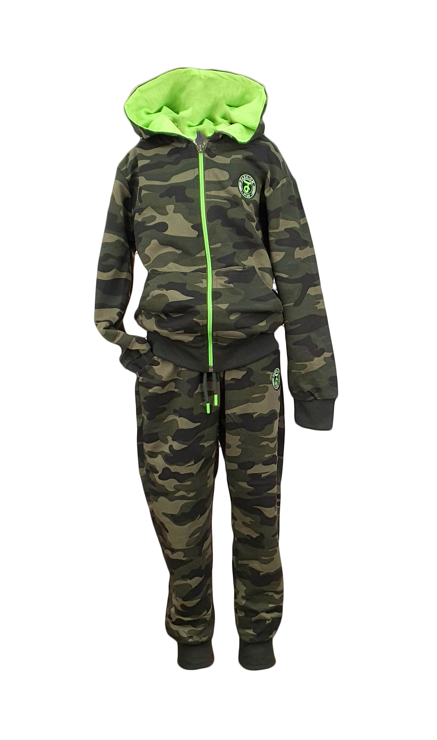 Trening doua piese, model Army, din bumbac. Este unul dintre cele mai cunoscute elemente vestimentare din lume. Este o piesa de imbracaminte conforatabila ce nu poate lipsi din garderoba nimanui. Treningul pentru copii este un produs confectionat din materiale moi si placute pentru oferirea unui confort sporit. Trening bumbac alcatuit din: bluza si pantalon. Bluza trening de culoare kaki, prevazuta cu gluga. Bluza se incheie cu fermoar si este cu bata elastica la maneci si talie. Pantalonii de trening au culoare kaki. Sunt prevazuti cu doua buzunare laterale, elastic, snur in talie si bata elastica. Treningul a fost initial destinat utilizarii in activitati sportive, dar a inceput sa fie putat si in alte contexte. Trening copii din bumbac confortabil. Trening doua piese, model Army, trendy ce-ti va oferi confort in perioada rece.