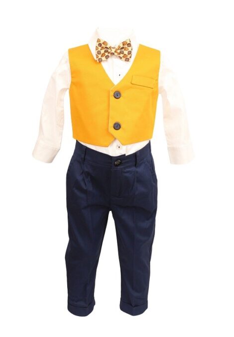 Costum botez Baby Boss culoare galben mustar