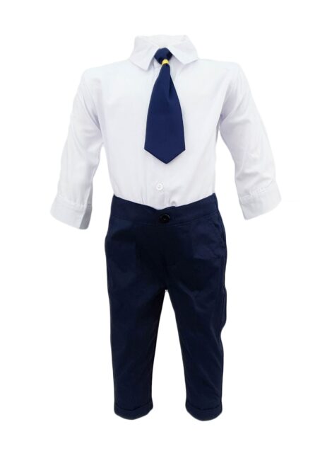 Costum botez, model Baby Boss, culoare alb-bleumarin